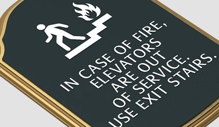 in case of fire, elevators are out of service... w/no braille