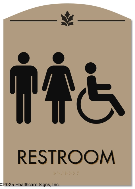 - Standard male, female, and handicap symbols; use to identify a restroom for both males and females that is handicap accessible. Symbol is raised.