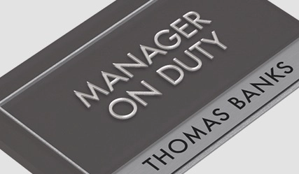 manager on duty sign w/ nameplate