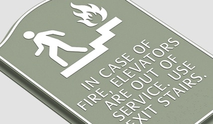 in case of fire, elevators are out of service... w/no braille