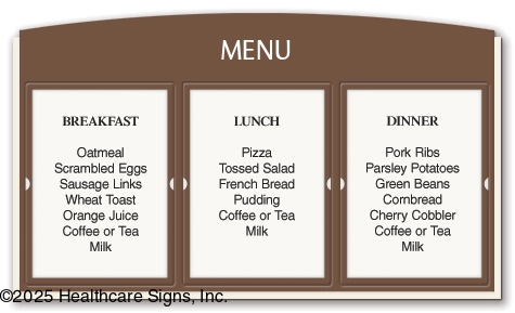 - Suggested uses: menus, daily activities, or upcoming events.