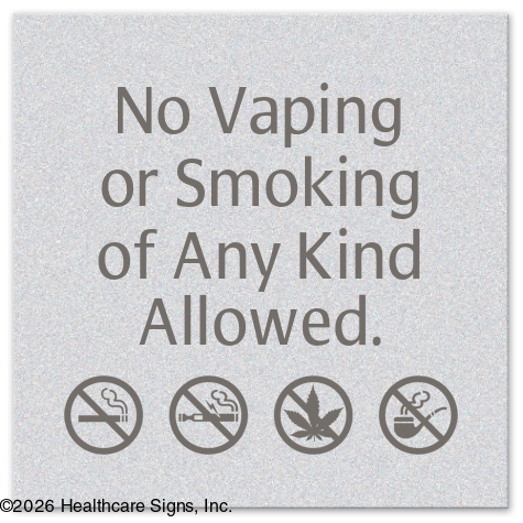Features no smoking, no vaping, no marijuana, and no pipes symbols.